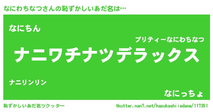 | 意味不明あだ名 | 『自称なにわちなつ』 |