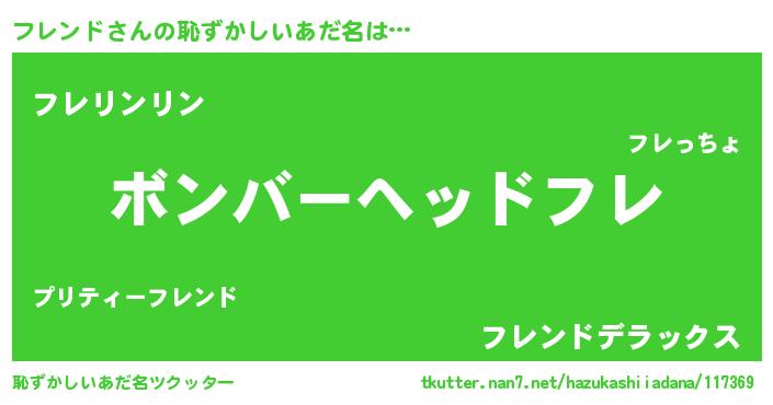 | ヘコむあだ名 | 『フレを』『豆乳』『フレもー』 |