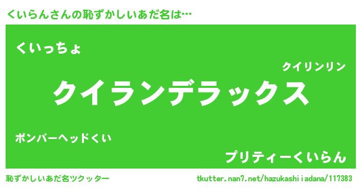| 女子向けラノベタイトル風あだ名 | 『闇のくいらん』『くいらんの雑貨屋さん』 |