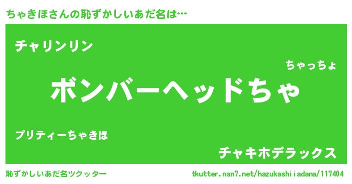 | 男性向けラノベタイトル風あだ名 | 『おまえをオタクにしてやるから、俺をちゃきほにしてくれ! 』 |