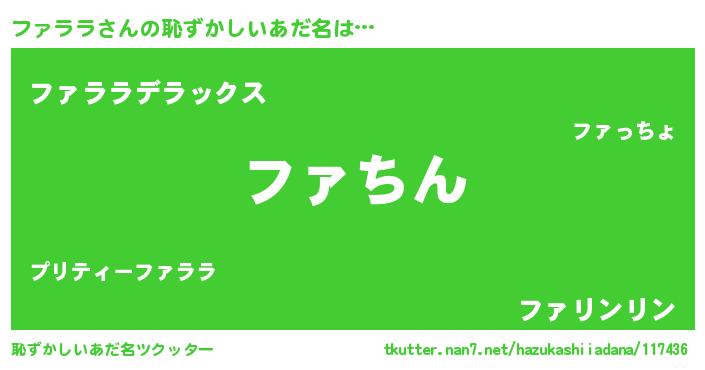 | ヘコむあだ名 | 『ファララ(笑)』『ファぷりん』 |
