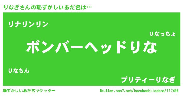 | 欧米人風あだ名 | 『りなぎ・ステッグマイヤー』 |