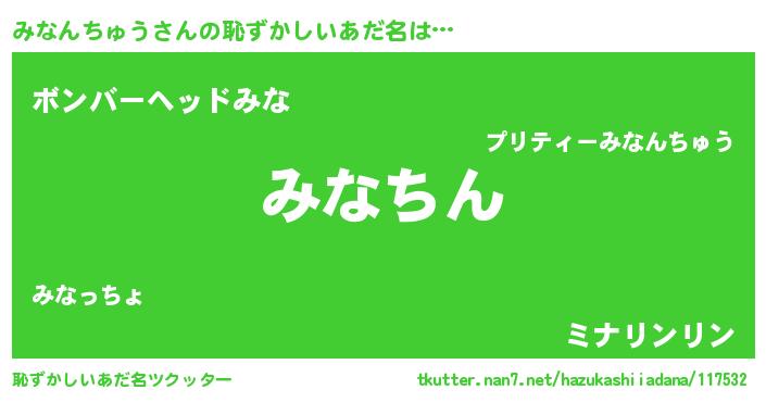 | ヘコむあだ名 | 『みなんちゅう(爆)』『みなっ子』 |