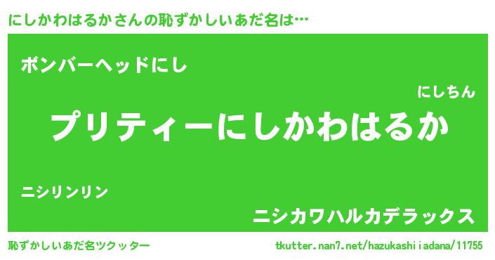 | ヘコむあだ名 | 『にしにー』『にしかわはるか(爆)』 |