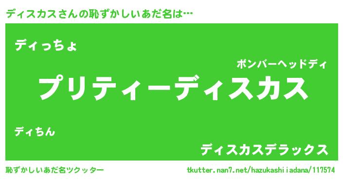 | 男性向けラノベタイトル風あだ名 | 『転生したらディスカスだった件』 |