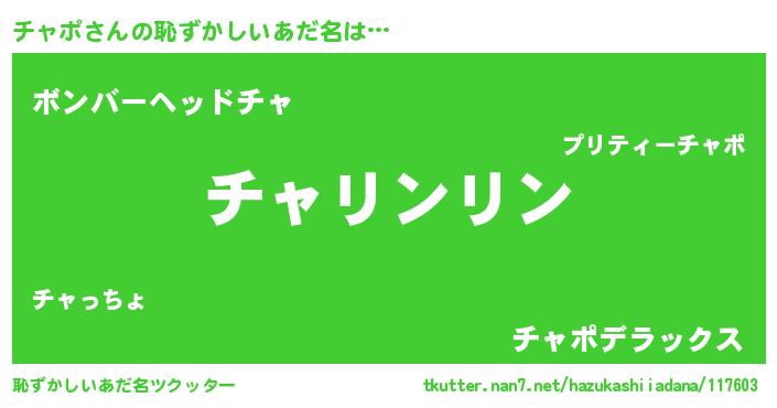 | 胡散臭い通販商品みたいなあだ名 | 『信頼と実績のペンダント…その名も「チャポ」』 |