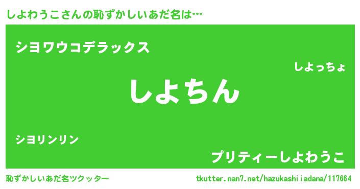 | 可愛いあだ名 | 『しよわうこママ』『しようちぇる』 |
