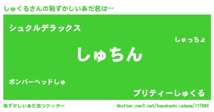 | ヘコむあだ名 | 『しゅくる(笑)』『しゅにゅー』 |