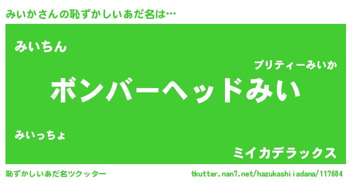 | ヒーロー風カッコイイあだ名 | 『正義の使者みいか』『ネオミイカ』 |