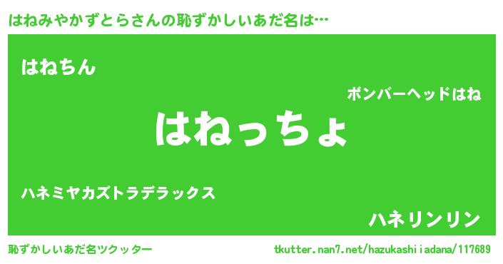| 意味不明あだ名 | 『はねみやかずとらフォーエバー』 |