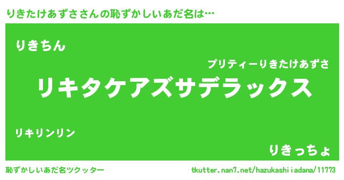 | 意味不明あだ名 | 『自称りきたけあずさ』 |