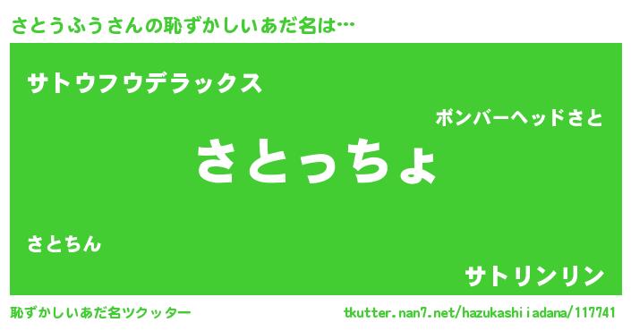 | ファンタジー風あだ名 | 『エターナルサトウフウー』『ゼサトトゥ』 |