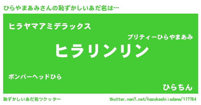 | 胡散臭い通販商品みたいなあだ名 | 『あなたにだけ特別に提供する世界で10本だけ現存している希少なブランデー…その名も「ひらやまあみ」』 |