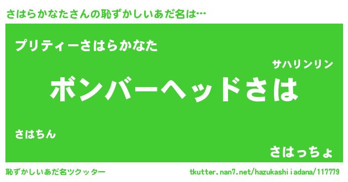 | 男性向けラノベタイトル風あだ名 | 『転生したらさはらかなただった件』 |