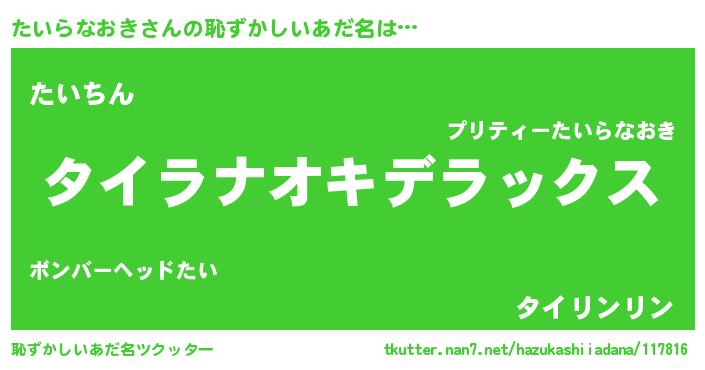 | 意味不明あだ名 | 『自称たいらなおき』 |