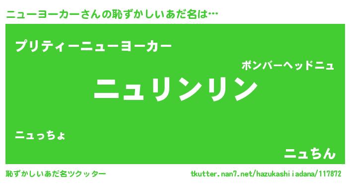| 意味不明あだ名 | 『住所不定無職ニューヨーカー(56歳)』 |