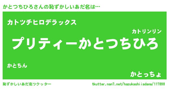 | ヒーロー風カッコイイあだ名 | 『仮面カトダー』『スーパーカトツチヒロ』 |