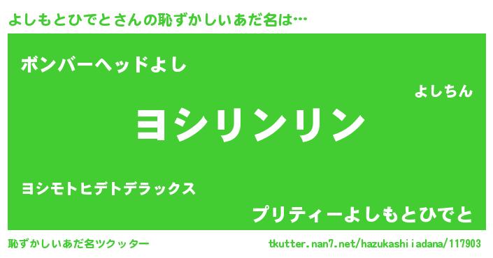 | ヒーロー風カッコイイあだ名 | 『黄金騎士ヨシ』『ネオヨシモトヒデト』 |