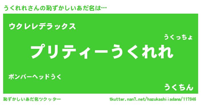 | 意味不明あだ名 | 『ペロリンうくれれ』『自称うくれれ』 |