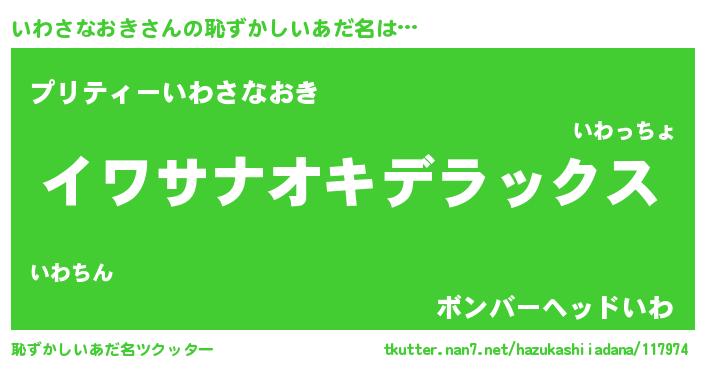 | 男性向けラノベタイトル風あだ名 | 『転生したらいわさなおきだった件』 |