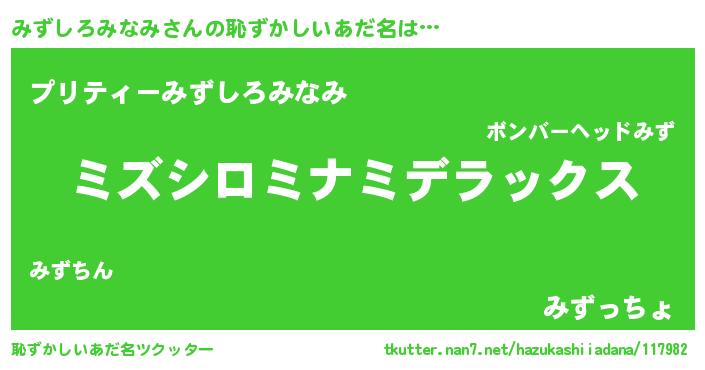 | 意味不明あだ名 | 『自称みずしろみなみ』 |