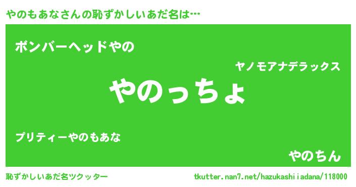 | 意味不明あだ名 | 『やのもあなフォーエバー』 |
