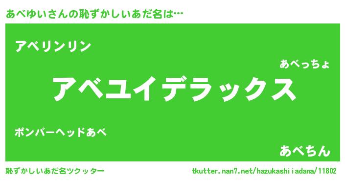 | ヒーロー風カッコイイあだ名 | 『仮面アベダー』『究極戦士アベユイ』 |
