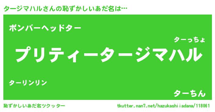 | 男性向けラノベタイトル風あだ名 | 『タージマハルアートオンライン』 |