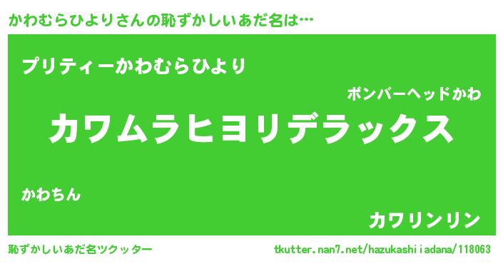 | 意味不明あだ名 | 『住所不定無職かわむらひより(93歳)』 |