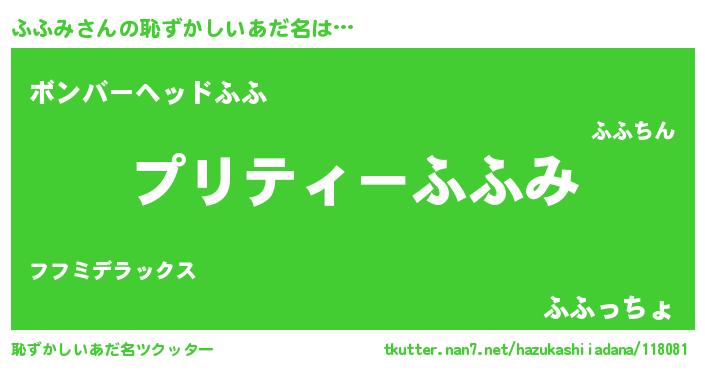 | ヒーロー風カッコイイあだ名 | 『スーパーフフミ』『慈愛の使者ふふみ』 |