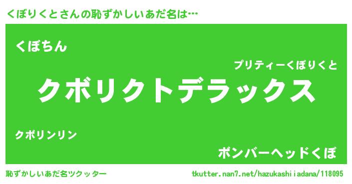 | 意味不明あだ名 | 『自称くぼりくと』『永久保存くぼりくと』 |