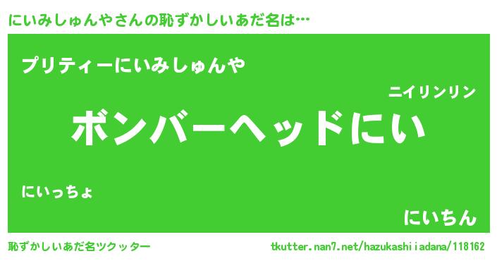 | 男性向けラノベタイトル風あだ名 | 『転生したらにいみしゅんやだった件』 |