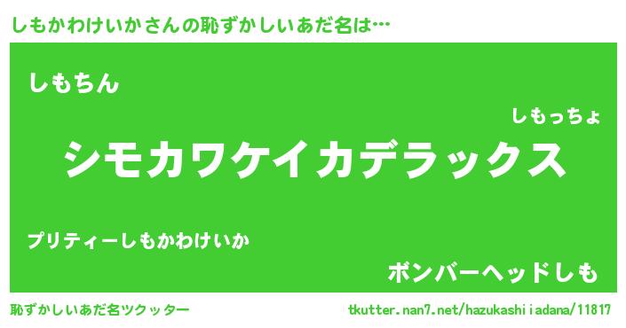 | 意味不明あだ名 | 『自称しもかわけいか』 |