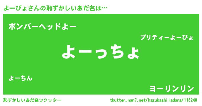 | ヘコむあだ名 | 『なまこ酢』『よーっ子』『よーにー』 |