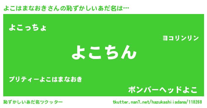 | ヒーロー風カッコイイあだ名 | 『ネオヨコハマナオキ』『仮面ヨコダー』 |