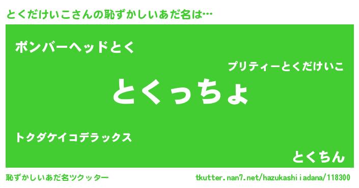| 意味不明あだ名 | 『とくだけいこフォーエバー』 |