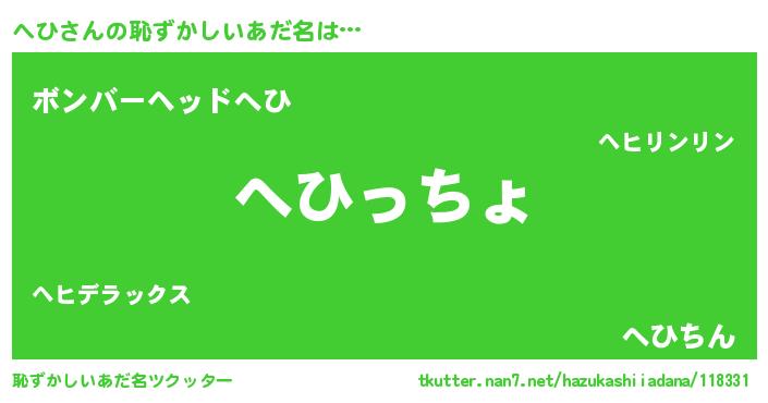 | ヒーロー風カッコイイあだ名 | 『ウルトラへひマン』『慈愛の使者へひ』 |