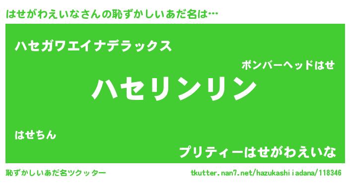 | ポケモン風あだ名 | 『ヒハセガワエイナ』『ハーセイ』 |