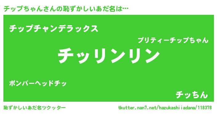 | 男性向けラノベタイトル風あだ名 | 『チップちゃんの嫁は女の子じゃないと思った?』 |