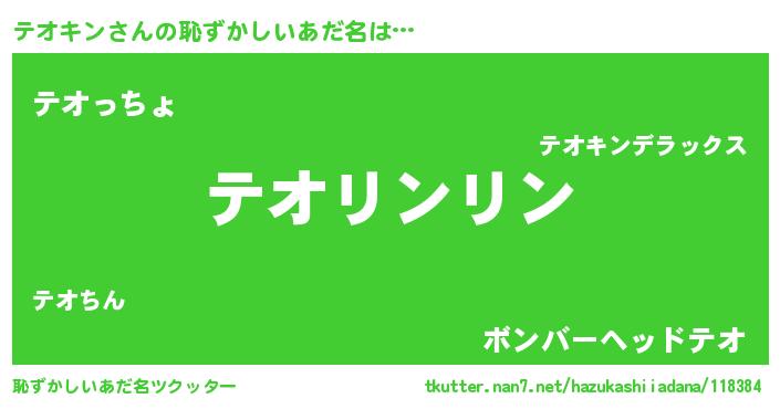 | 男性向けラノベタイトル風あだ名 | 『テオキンに滅ぼされるだけの簡単なお仕事です』 |