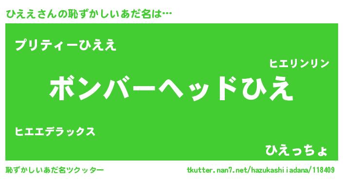 | 料理風あだ名 | 『ひええごはん』『ひええのトマト煮』 |