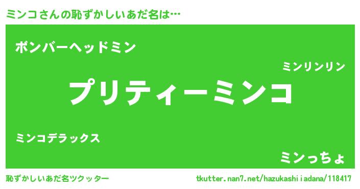 | ヘコむあだ名 | 『ミンもー』『酢こんぶ』『ミンっぺ』 |