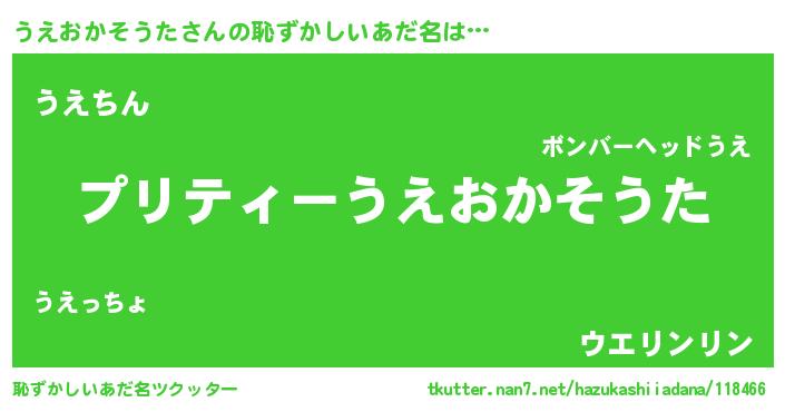 | ヘコむあだ名 | 『うえにゅー』『うえおかそうた(笑)』 |