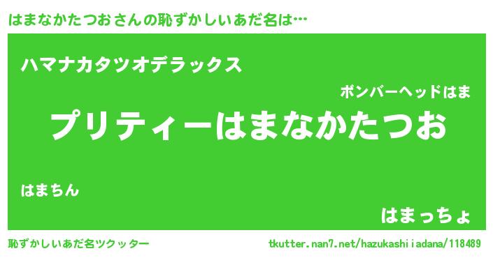 | 男性向けラノベタイトル風あだ名 | 『この素晴らしい世界にはまなかたつおを!』 |