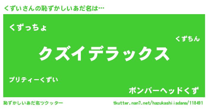| ヒーロー風カッコイイあだ名 | 『ウルトラ戦士クズイ』『ネオクズイ』 |