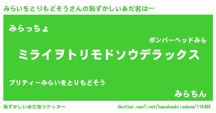 | 意味不明あだ名 | 『自称みらいをとりもどそう』 |