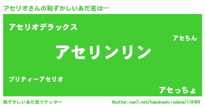| ポケモン風あだ名 | 『ヒアセリオ』『アセセウス』 |