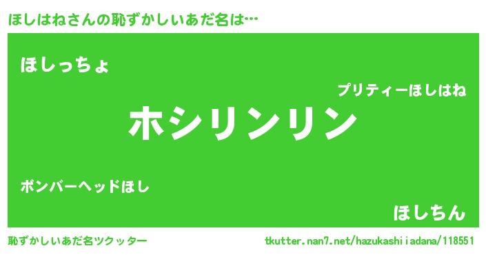 | ポケモン風あだ名 | 『ヒホシハネ』『ホシハダネ』 |
