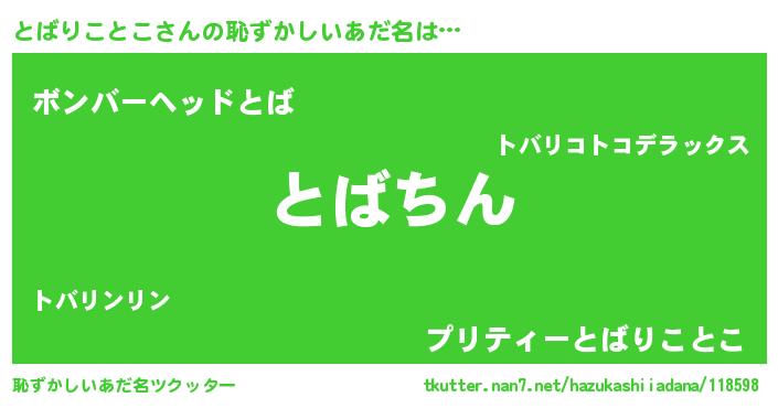 | ヘコむあだ名 | 『とばりことこ(笑)』『とばもー』 |