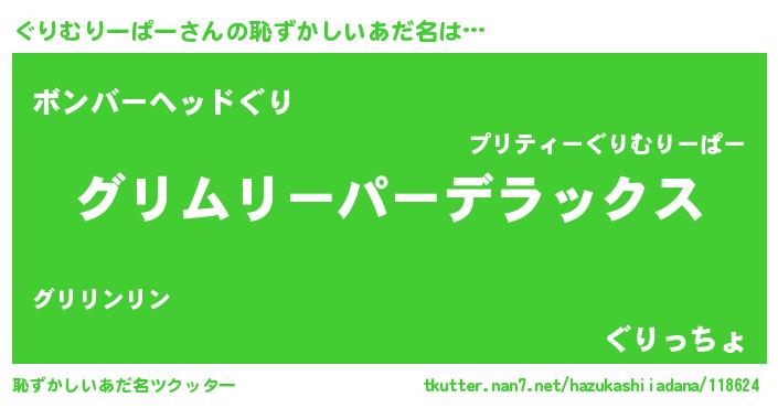 | 男性向けラノベタイトル風あだ名 | 『Re:ぐりむりーぱーから始める異世界生活』 |